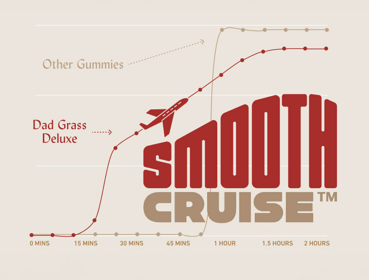 Fast-acting. Gentle build. Mellow ride. Thanks to our proprietary Smoothe Cruise™ Technology. We took the guess-work out of gummies. No more "will it or won't it". No more zero-to-100 mph blast offs.