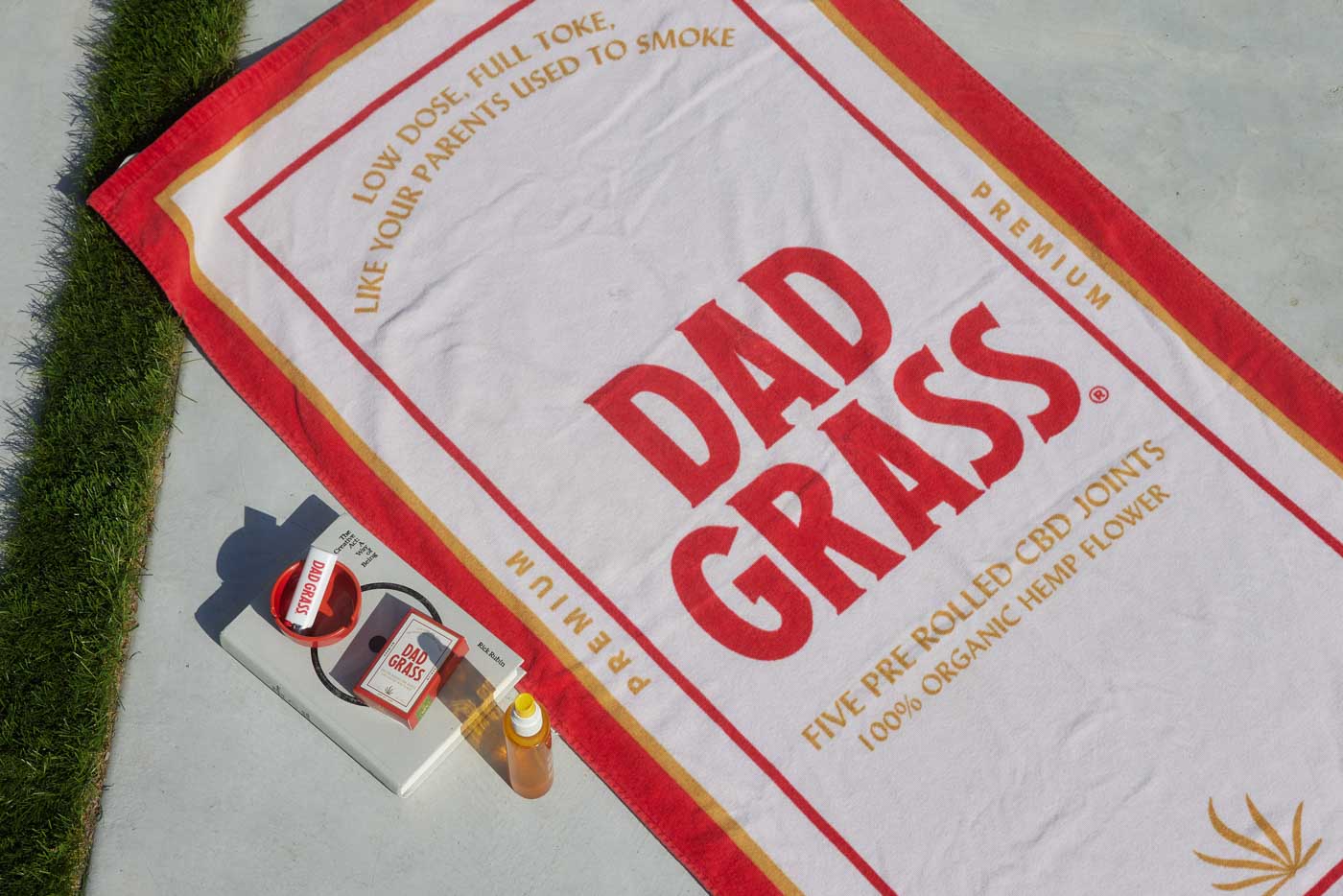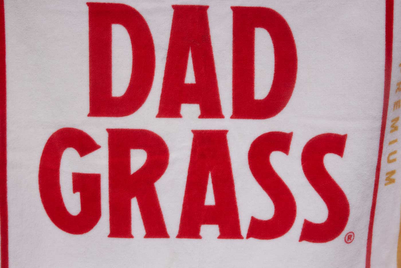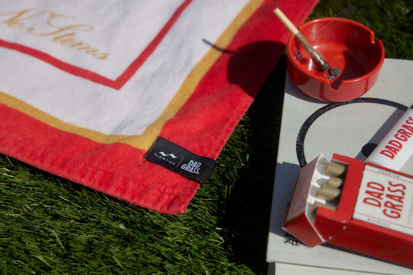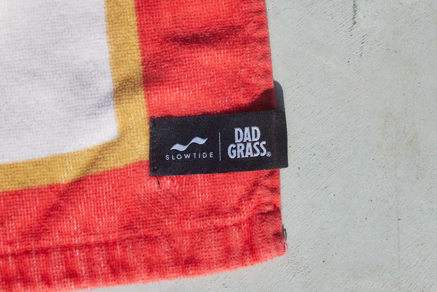 A classic, no-frills towel that does exactly what it’s supposed to do: absorb water and provide a groovy-lookin’ protective layer between your hot bod and the sand, pool furniture and grass as well as other natural or man-made conditions. We collaborated with Slowtide, the chillest towel masters of our time, because we dig their commitment to quality and knew they could deliver a Dad Grass-version of our favorite merch towels from the 80s that are so hard to find these days. Heck, if the Grateful Dead, The Beatles and WuTang trusted them…