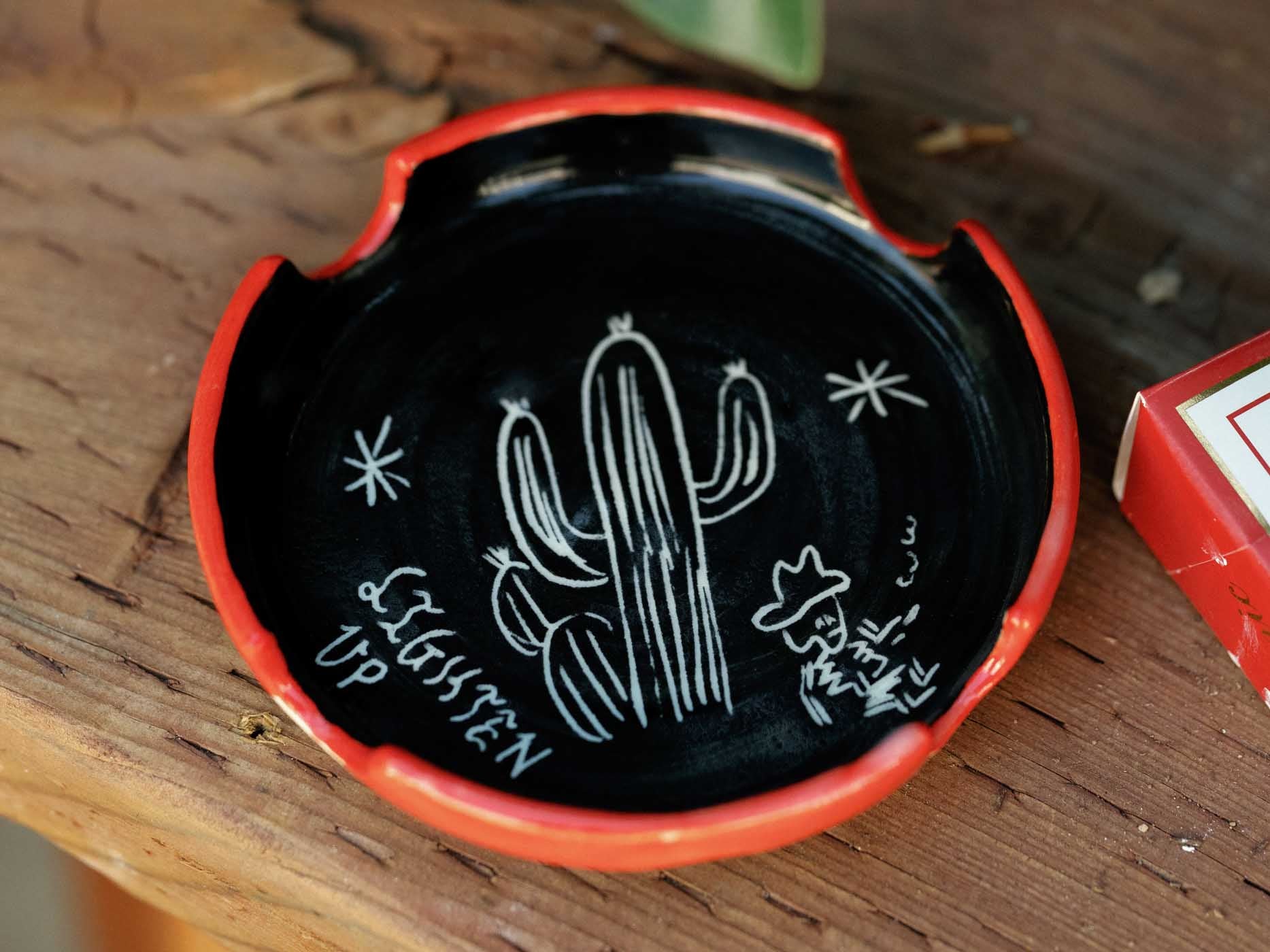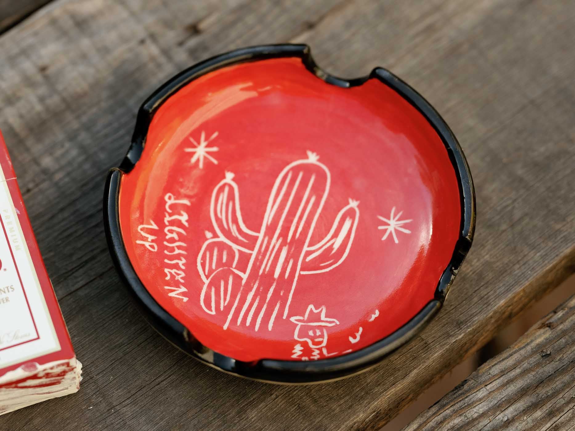 A limited-edition of 40 ceramic ashtrays designed and made by Danny D's Mudshop in collaboration with Dad Grass. Available in red and black, each one is unique and serialized by Danny D himself.