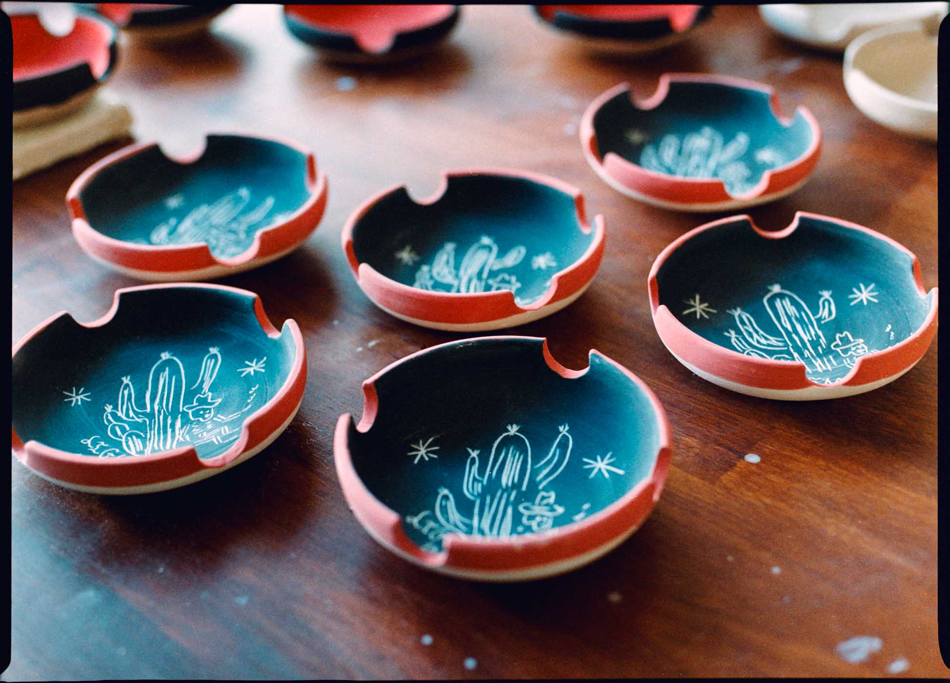 Daniel Dooreck is our kind of potter head. His brand, Danny D's Mud Shop, isn’t trying to do anything fancy or complicated. The way he puts it, he’s just turning mud into ‘really nice’ pieces of art. Out of a small studio, located just down the street from Dad Grass’s LA HQ, Danny handcrafts his signature style of ceramics with their distinctive freehand carvings and illustrations. The artwork pulls from California motorcycle culture, cowboys and the west, tattoo artists who inspire him and other things we both share a love for…like vintage Toyotas! It takes him three days to create each piece, including throwing, drying, carving and painting. But when they hit the stores, they usually sell out in minutes. He already had a well-deserved following when he got written up in the LA Times a couple months ago. Now he’s a bit of a local legend. He’s even moved out of his garage and into an actual studio. Yeah, he’s blowing up. Don’t be fooled though. He’s still the humblest and sweetest dude behind a wheel.